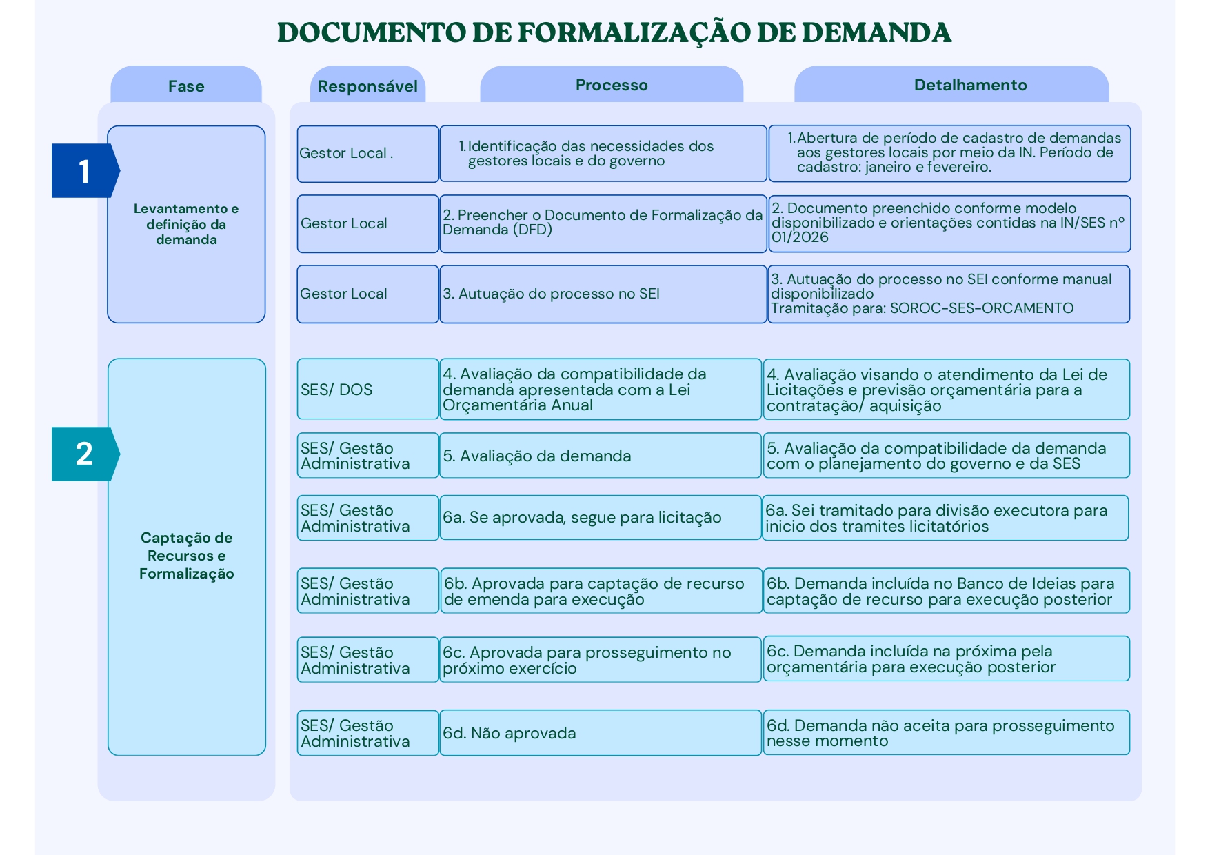 - Responsabilidade do Gestor: Os Gestores Locais são os responsáveis por preencher o DFD.