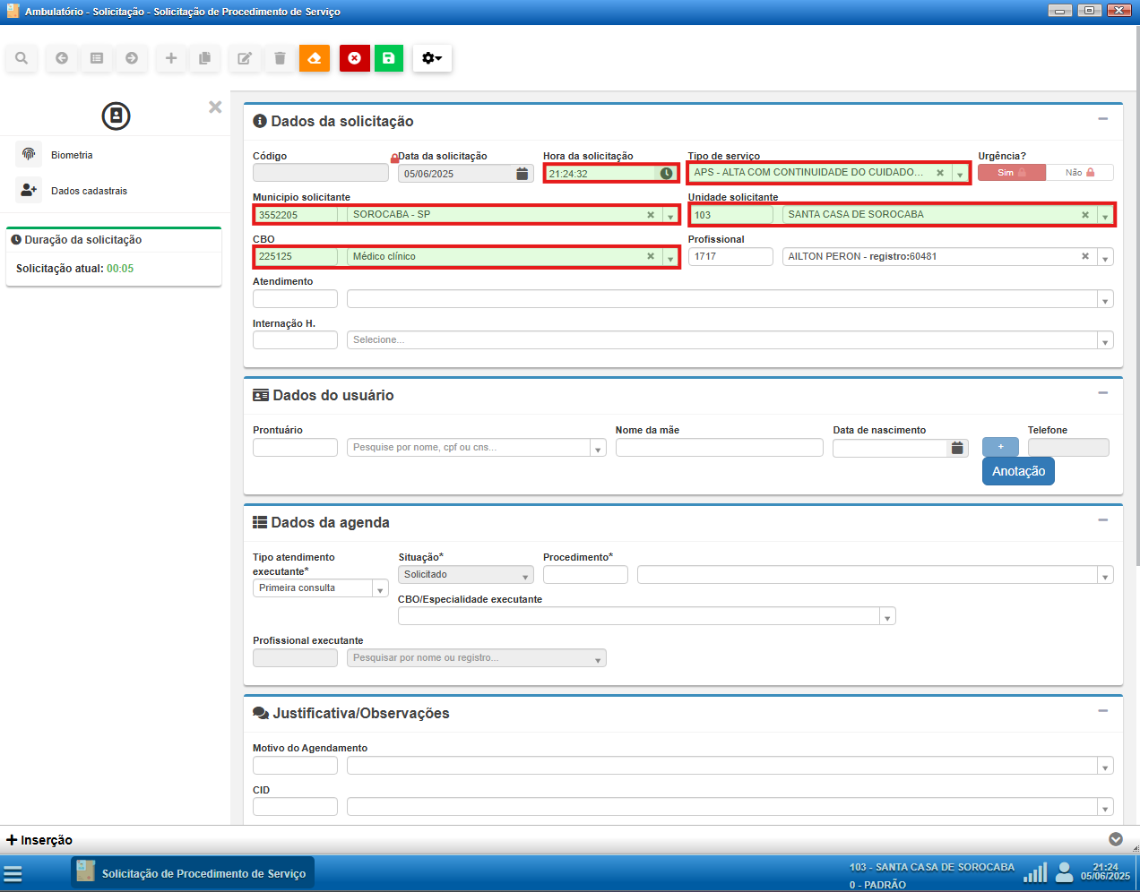 - CBO do profissional solicitante
