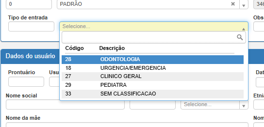 Em algumas situações, de acordo com a parametrização da unidade e dos serviços vinculados, determinados tipos de entrada não exigem o envio do paciente para a triagem. Nestes casos, o paciente será encaminhado diretamente para a fila de atendimento da especialidade.