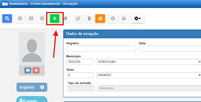 Para iniciar um novo registro de recepção, o operador deve acionar o botão "+" (Adicionar Novo Registro) disponível na parte superior da tela.