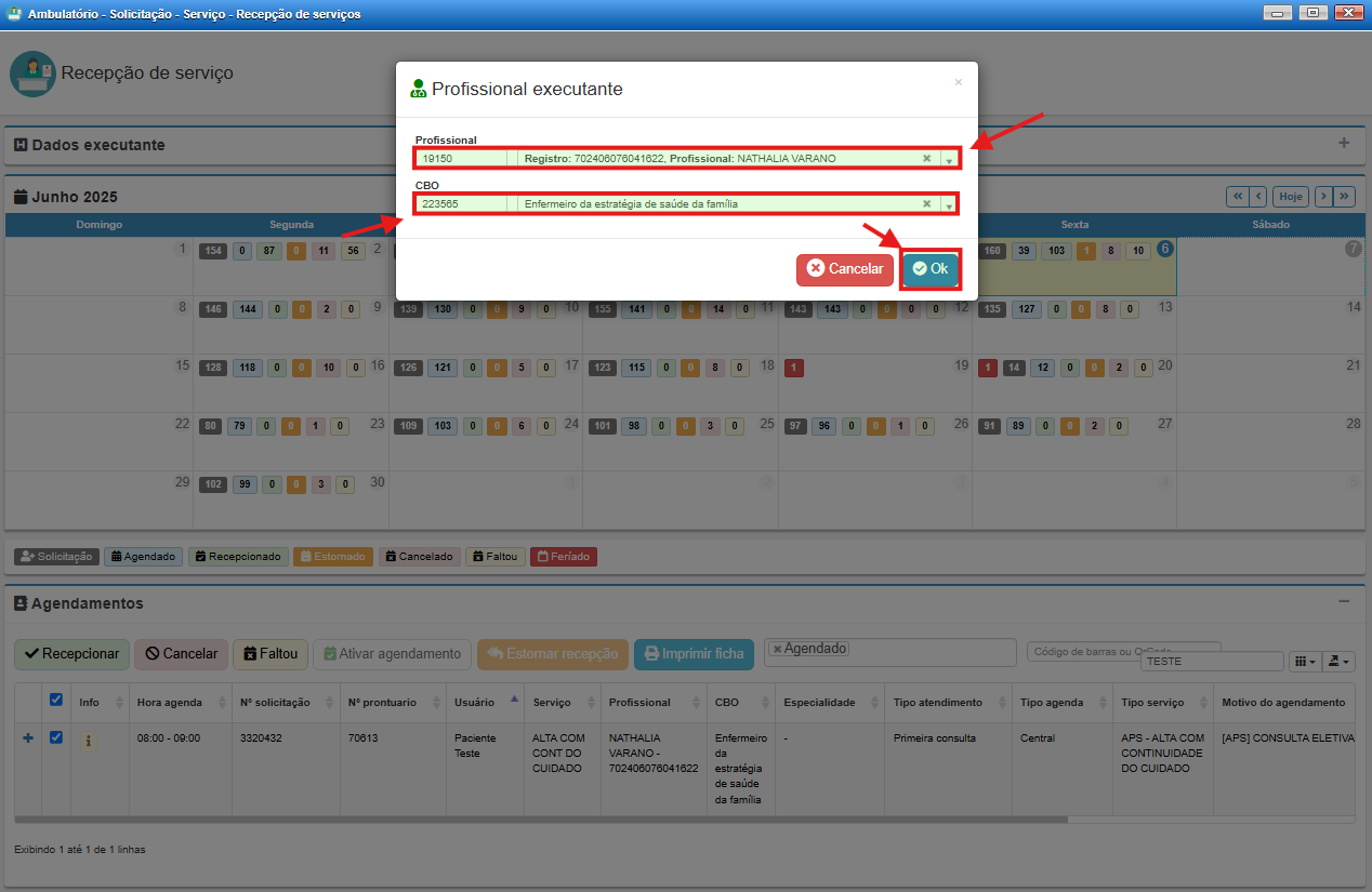 Esta etapa é fundamental para liberar o paciente para ser atendido e registrar o comparecimento.