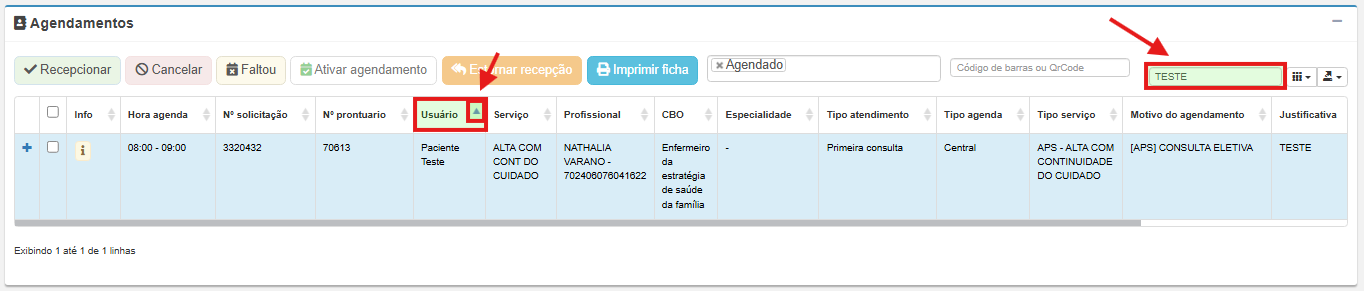 Com a lista de agendamentos visível, o paciente poderá ser localizado de diversas formas: