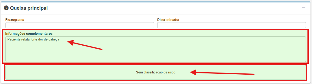 Campo de texto livre para registrar a queixa principal relatada pelo paciente