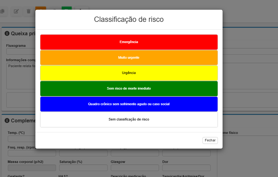 Botão para informar a Classificação do Paciente