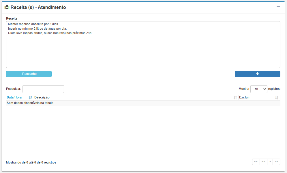 Esse texto ficará salvo no prontuário e poderá ser impresso pelo profissional para entrega ao paciente.