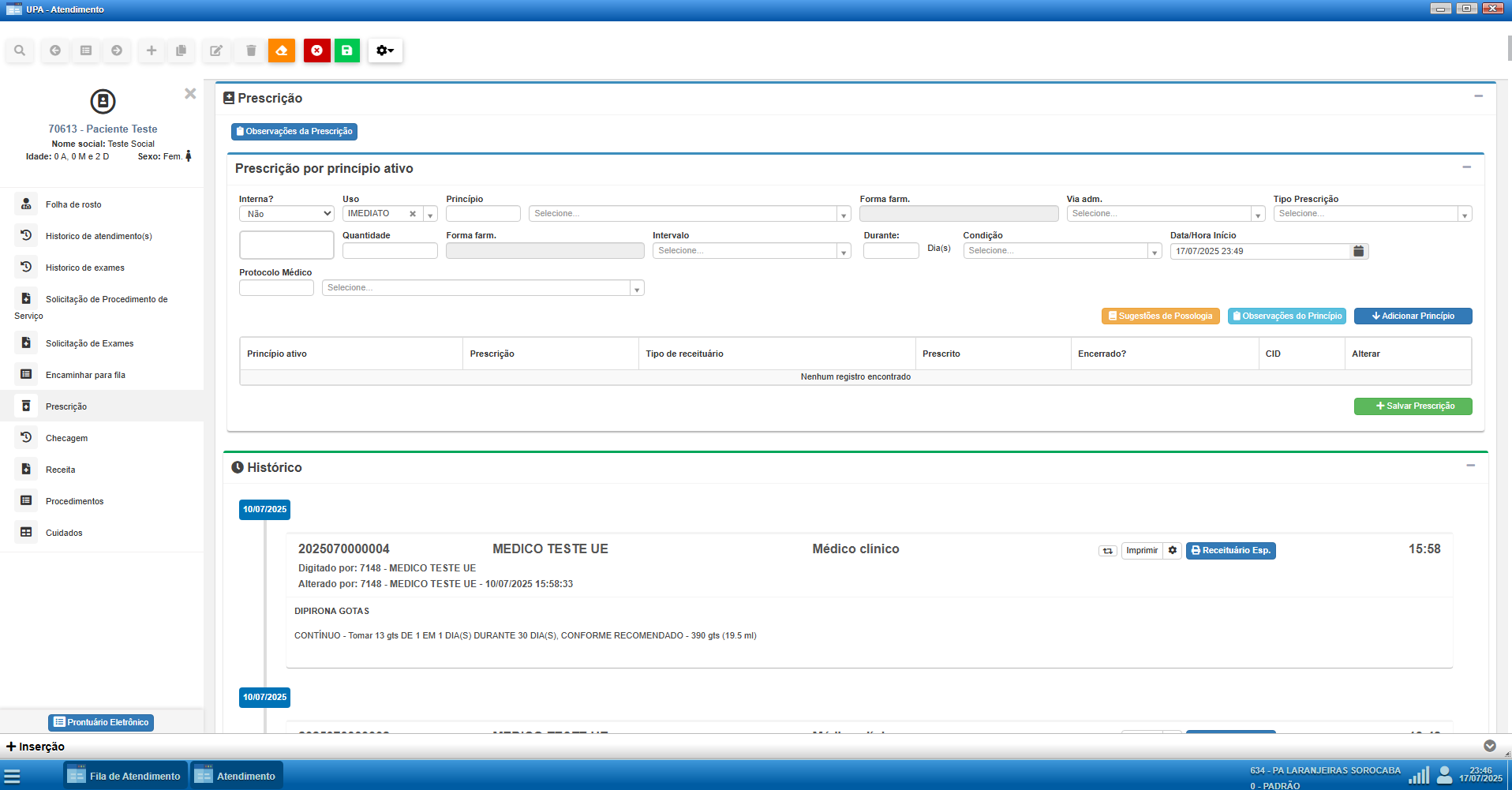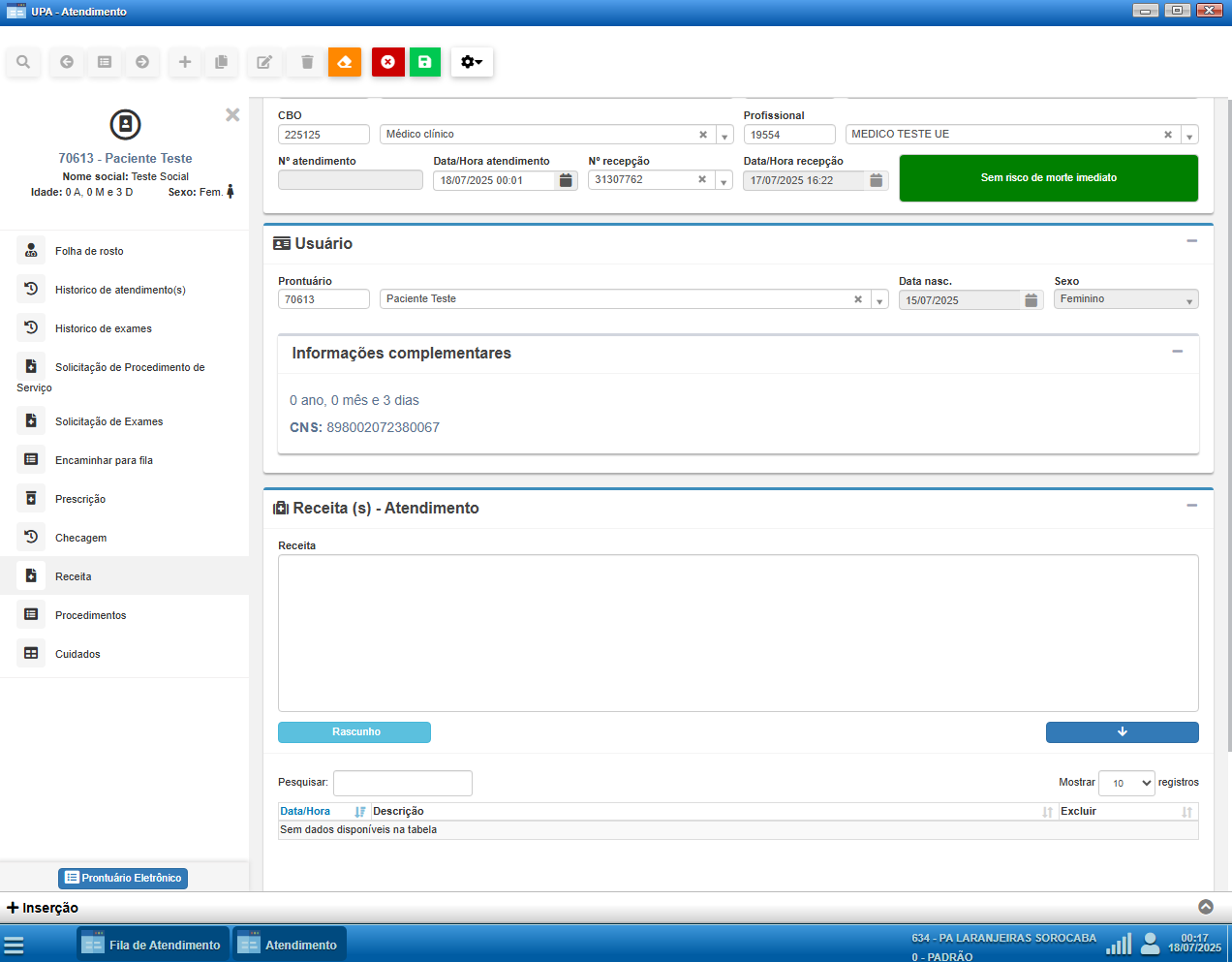 A partir desse momento, todos os registros clínicos realizados na unidade de urgência (médicos, odontológicos, enfermeiros, técnicos de enfermagem e outros) devem ser feitos exclusivamente pela tela de Atendimento. Essa decisão foi adotada com o objetivo de padronizar o fluxo assistencial e garantir maior rastreabilidade das condutas realizadas, promovendo segurança tanto para o profissional quanto para o paciente.