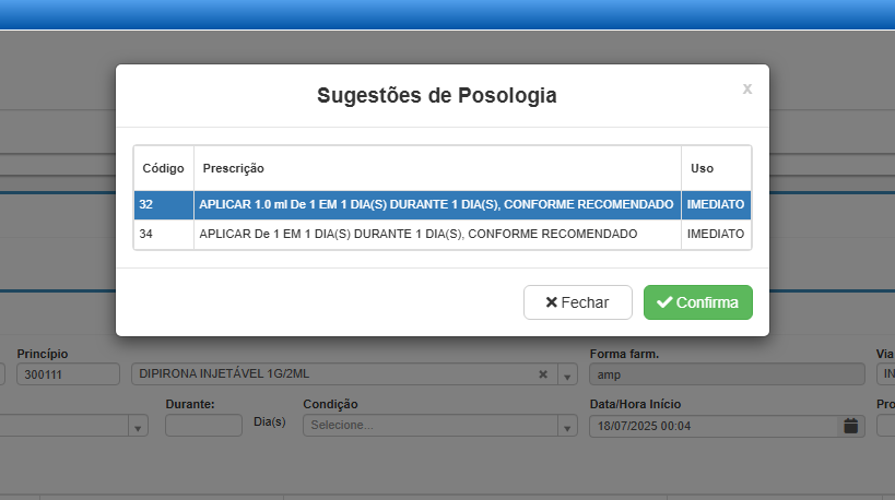 • Medicações que não estão cadastradas na lista de prescrição oficial do sistema;