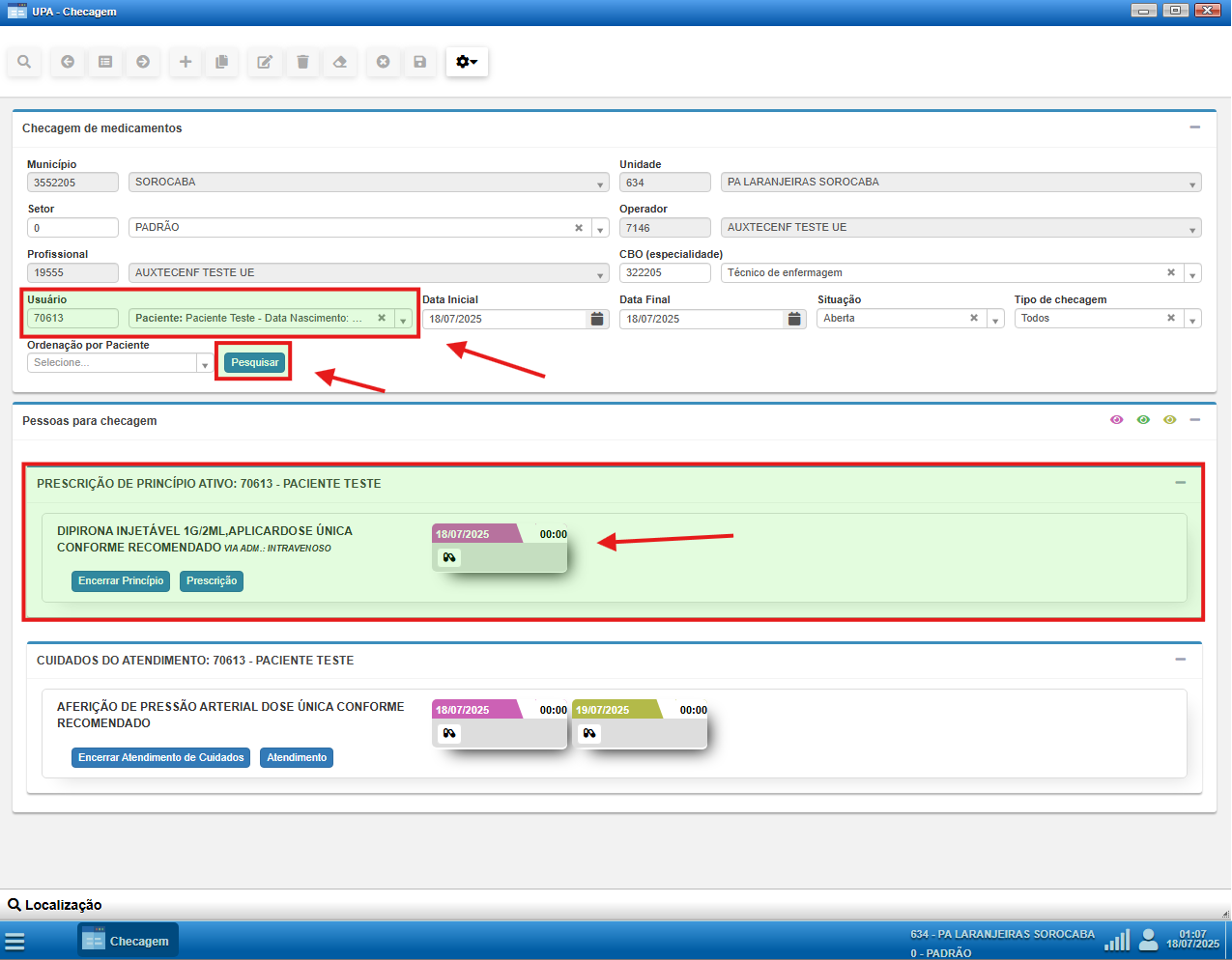 Embora ainda não esteja vinculada diretamente ao atendimento na UPA, é altamente recomendado que os profissionais já realizem a checagem por essa tela paralela, garantindo a rastreabilidade e segurança assistencial.