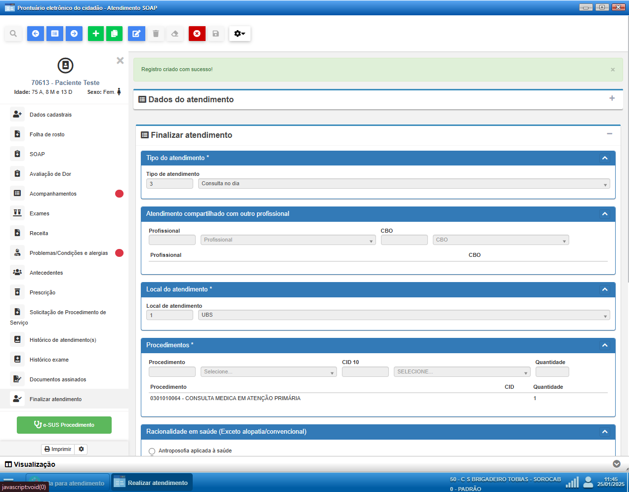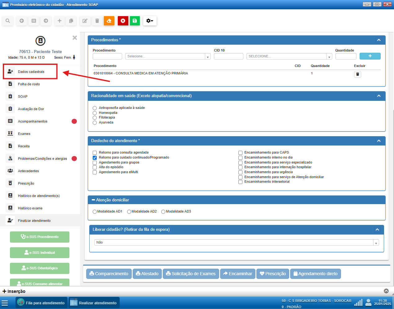 Estando tudo corretamente preenchido, você pode fechar a ficha de atendimento e liberar o paciente.
