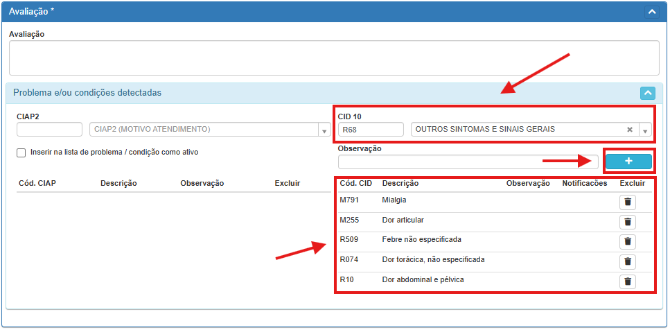 Vale ressaltar que o prontuário permite a adição de quantos CIDs forem necessários, sem restrição de quantidade.