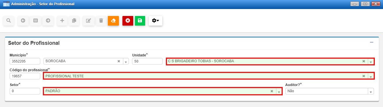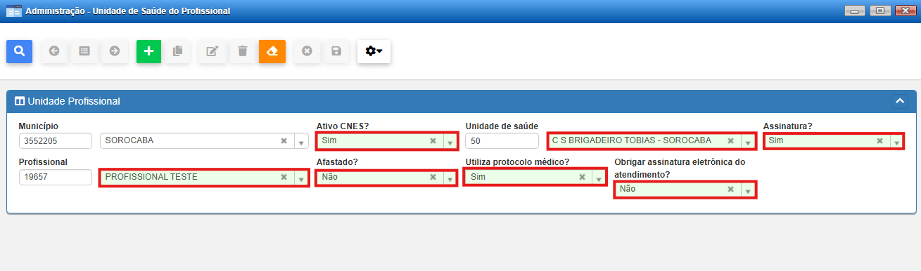 • Profissional: se certificar de que se trata do profissional que esta sendo parametrizado