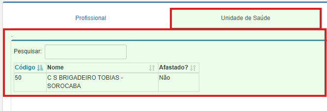 - Unidade de Saúde: mostra em quais unidades o profissional está vinculado