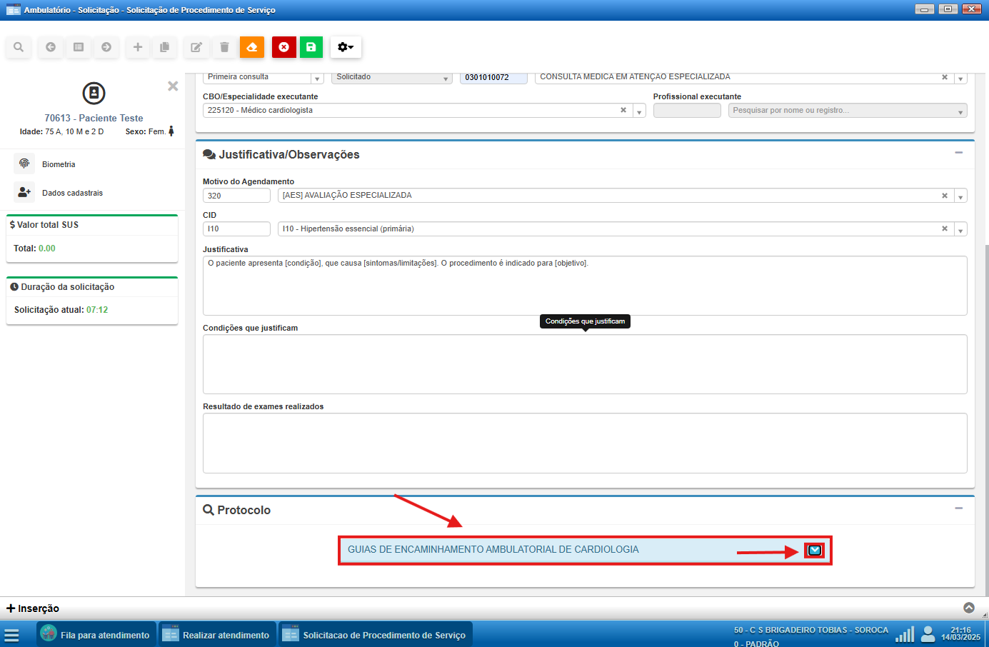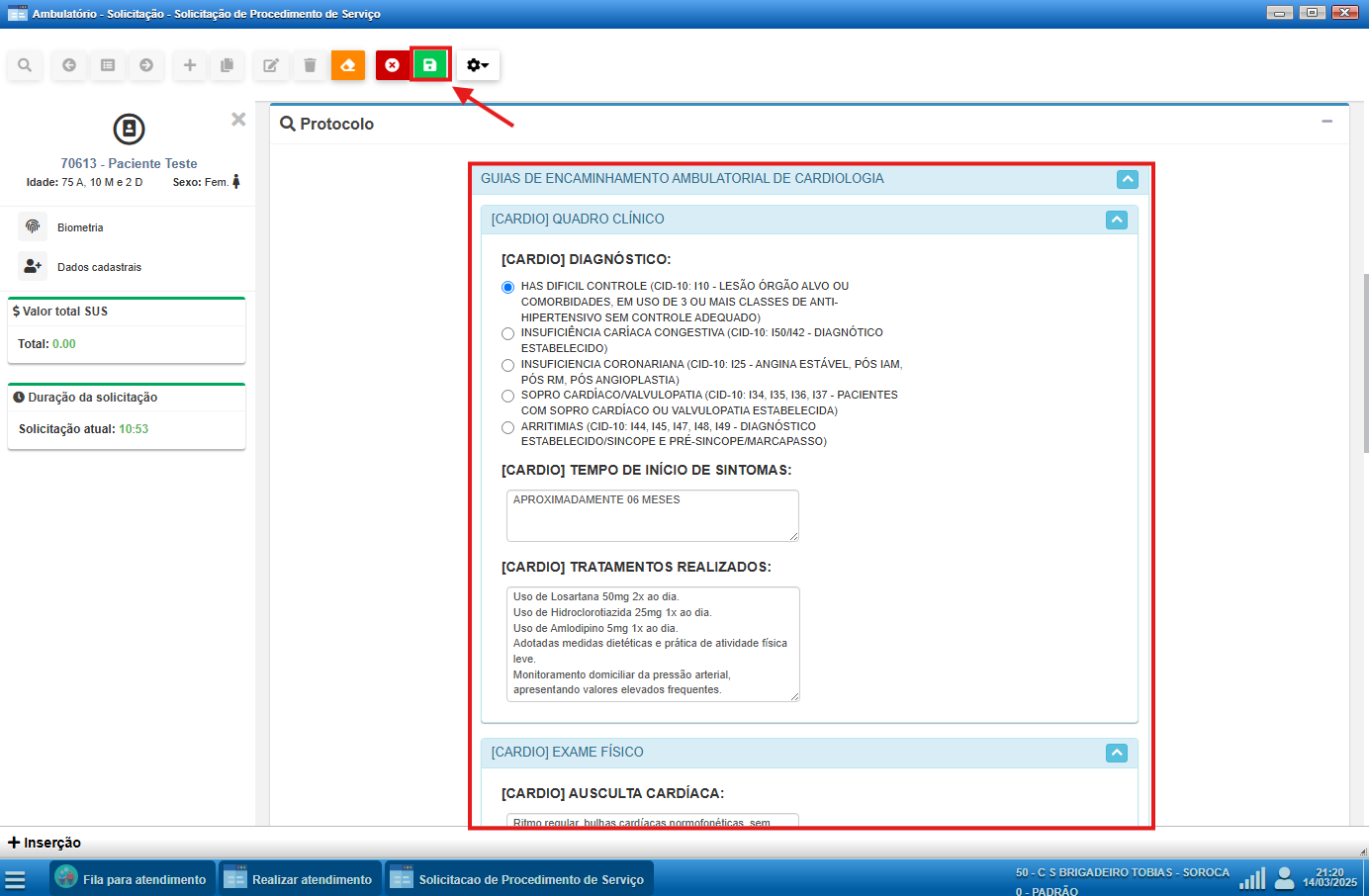 Com o Protocolo devidamente preenchido, devemos salvar a Solicitação de Procedimento de Serviço,