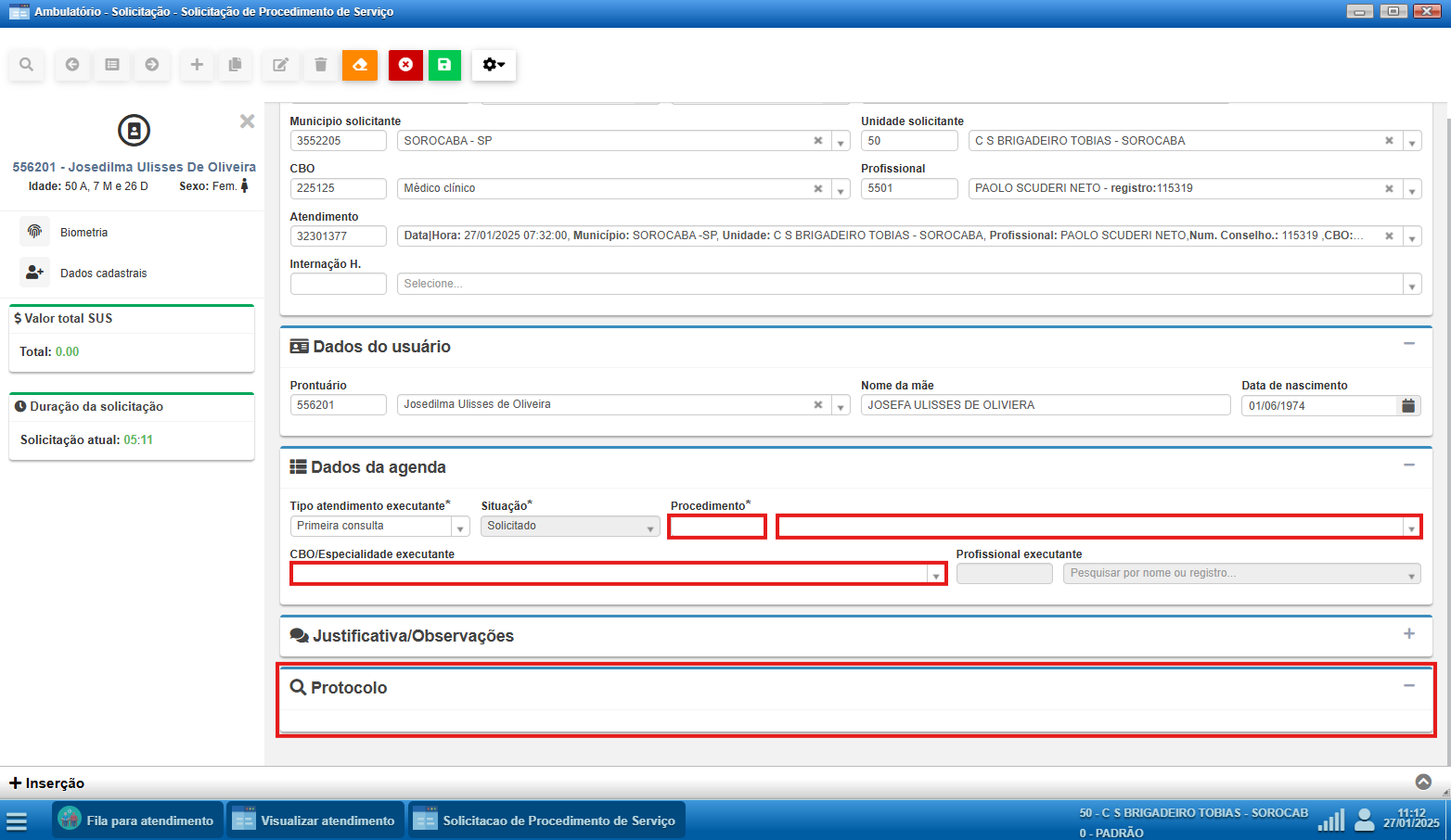 O PROTOCOLO APARECE A PARTIR DO PREENCHIMENTO DE PROCEDIMENTO E CBO EXECUTANTE