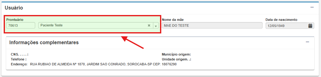 Recomenda-se realizar a pesquisa utilizando o número do prontuário, visando maior agilidade no retorno das informações, considerando o elevado volume de cadastros ativos no sistema.