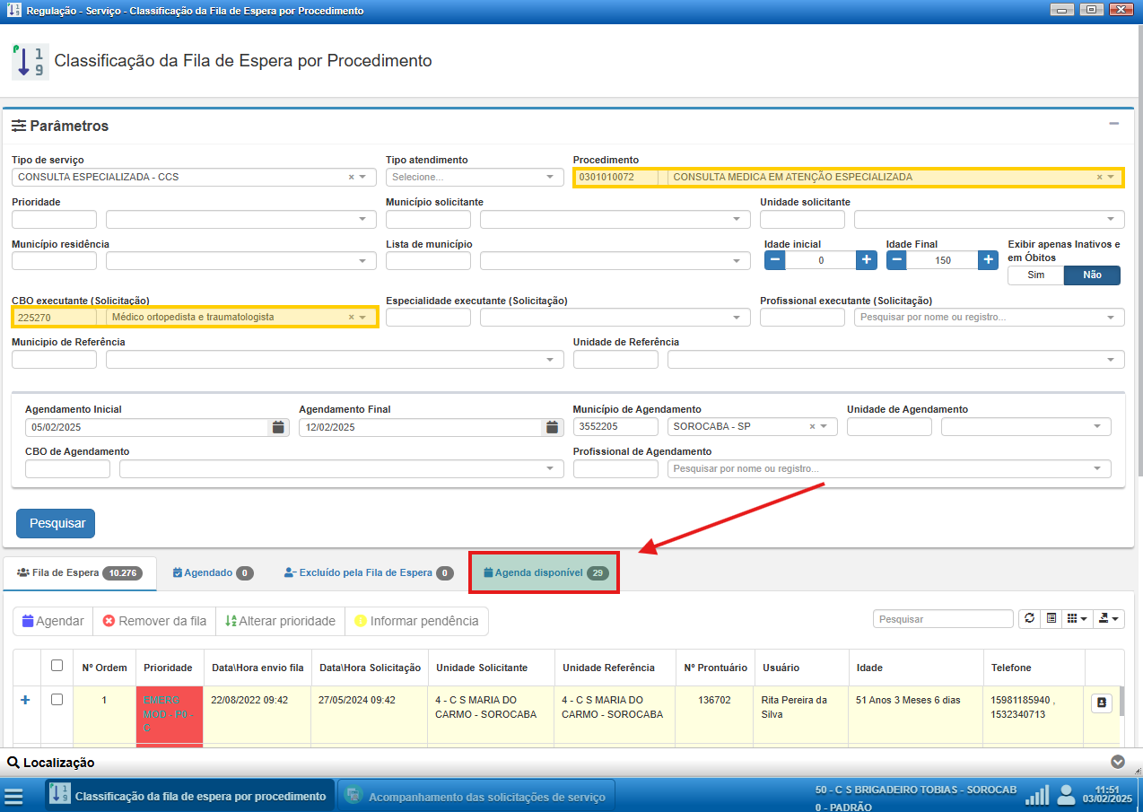 5.1 Localizando a tela de Classificação da fila de espera por procedimento