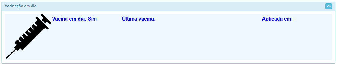 Este bloco apresenta a situação vacinal do paciente, indicando se as vacinas estão em dia, além de informações sobre a última vacina registrada e a data de aplicação.