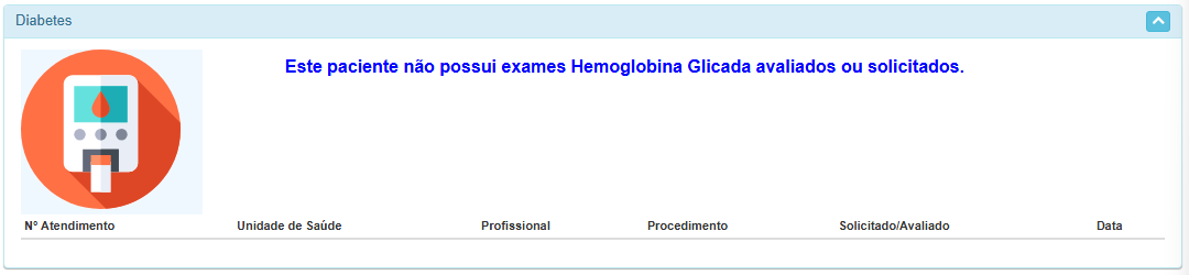 Neste bloco, são exibidas informações relacionadas ao acompanhamento do paciente com diabetes, como registros de exames (por exemplo, hemoglobina glicada), quando disponíveis.