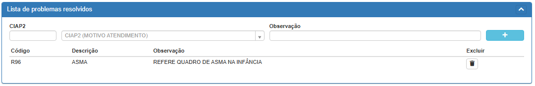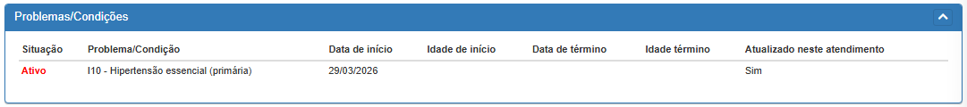 Neste bloco, podem ser registrados problemas de saúde que o paciente já apresentou, mas que não estão mais ativos no momento.
