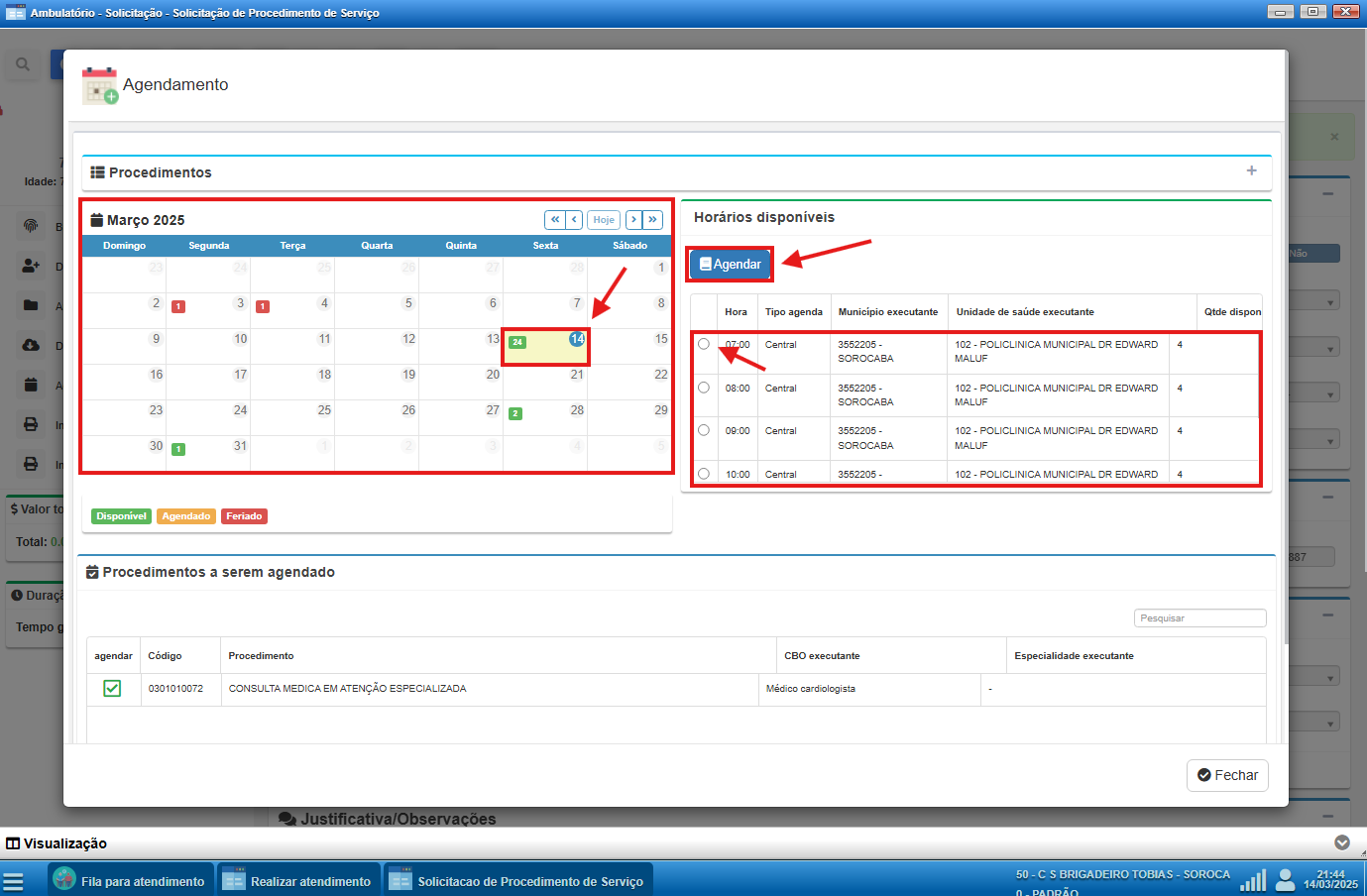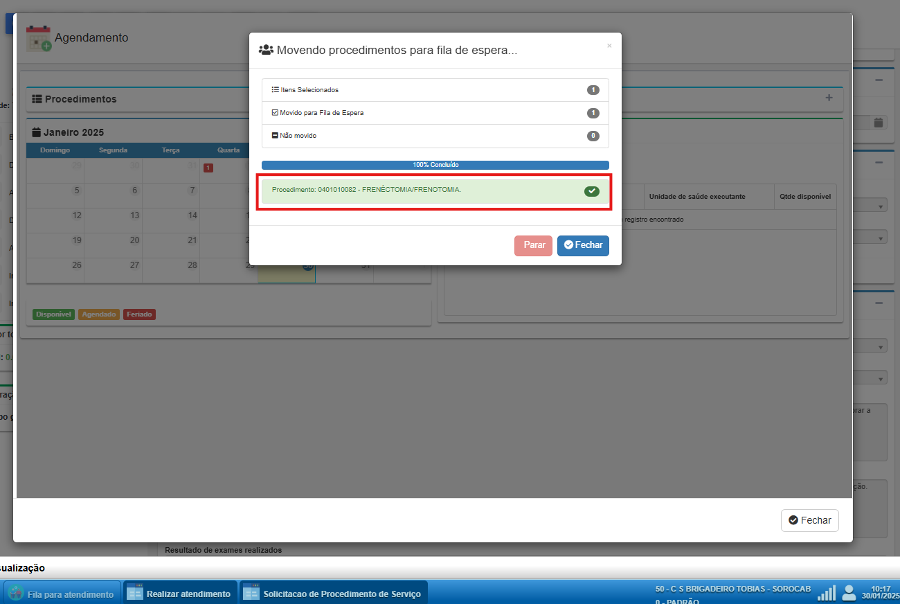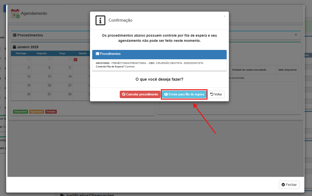 ATENÇÃO: Essa opção também será utilizada quando o procedimento estiver parametrizado como "registra" e não houver vagas disponíveis para agendamento.