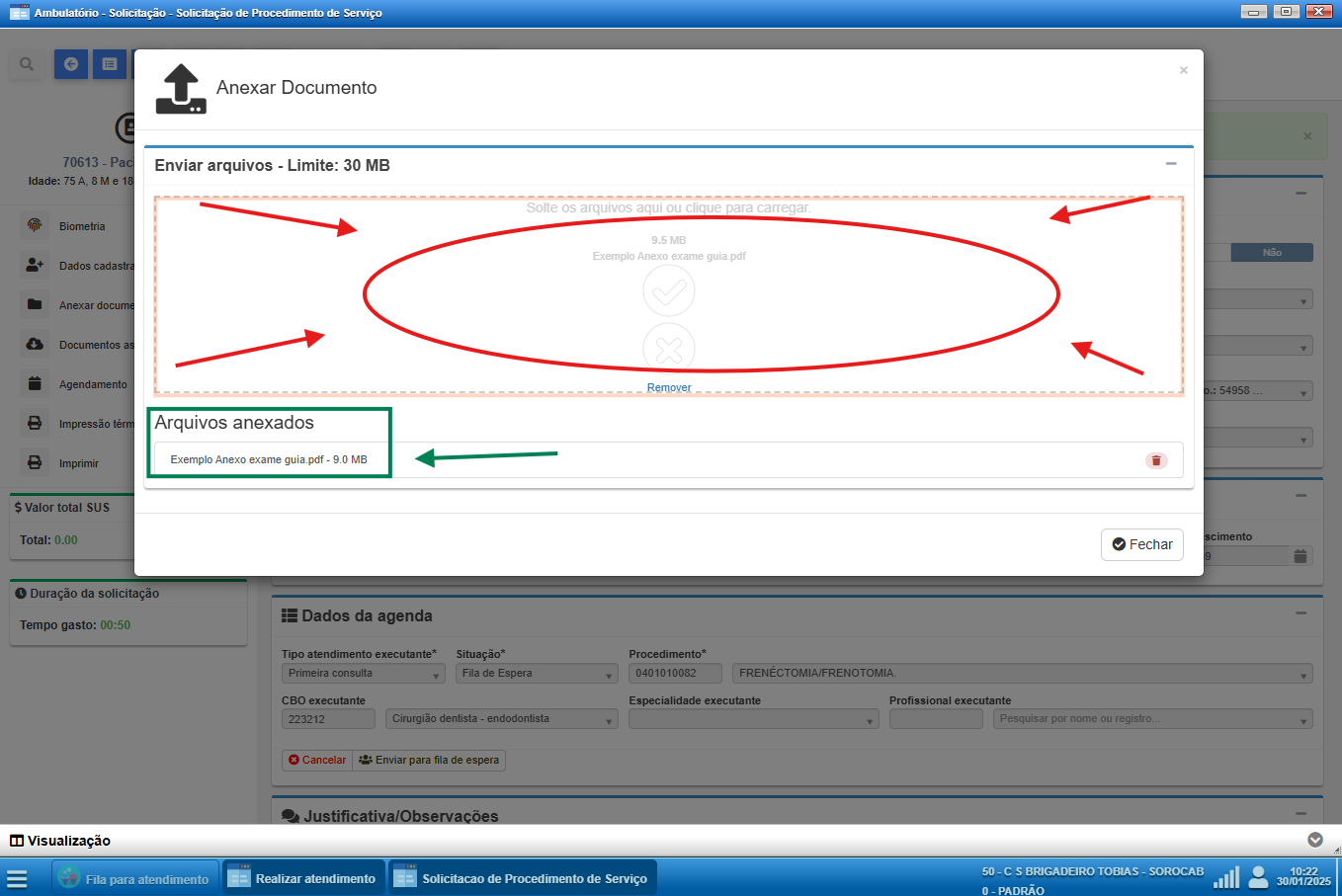 Anexando documento na guia de encaminhamento