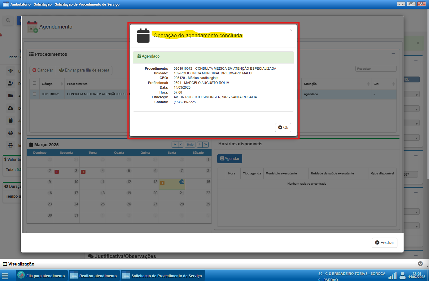 O Paciente estará devidamente incluído na demanda reprimida quando a mensagem de confirmação aparecer na tela.