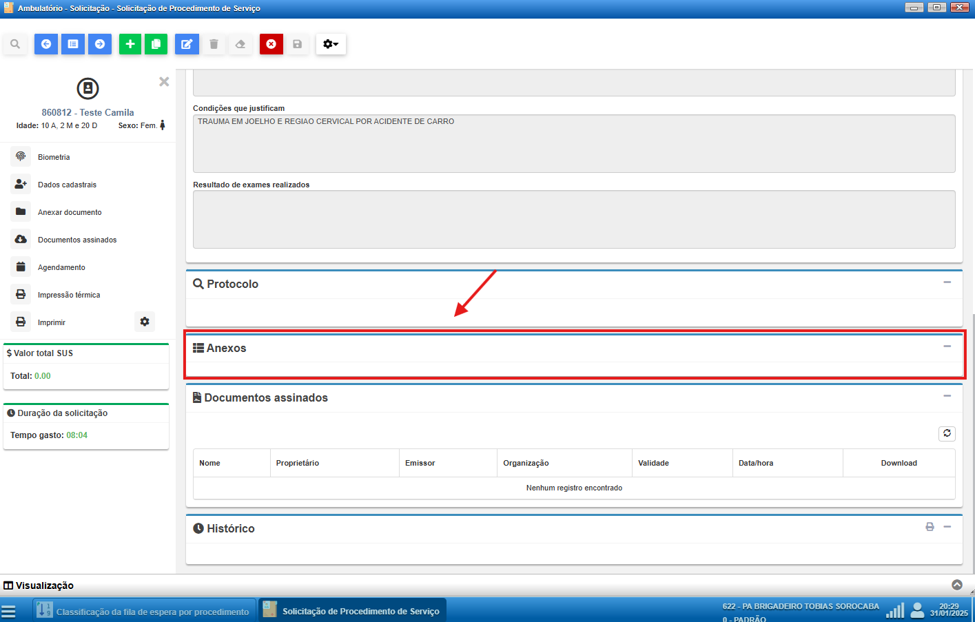Os arquivos digitalizados devem ser visualizados no bloco específico de documentos anexados.