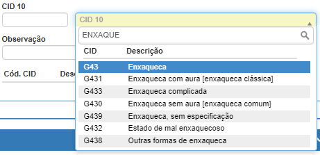 | Caixa de seleção: ao digitar parte da palavra desejada, o sistema automaticamente traz todos os registros que contêm a palavra, após selecione o item desejado. | |