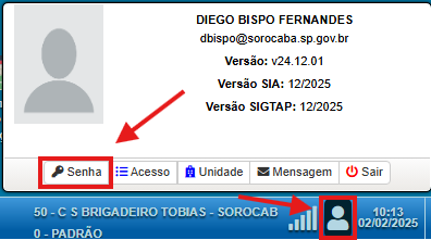 Sempre que entrar no Sistema, é indicado que verifique em qual unidade você fez login, caso necessite alterar, você deve clicar em