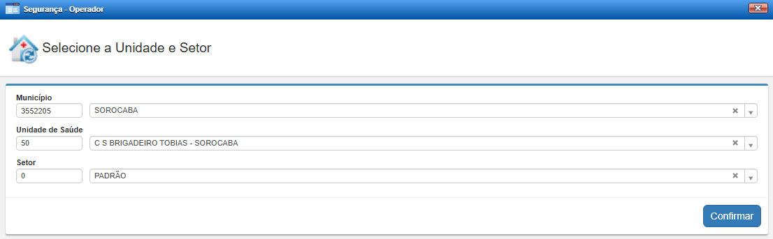 Não esqueça de que, para alterar a unidade/setor do login, você deve confirmar a alteração.