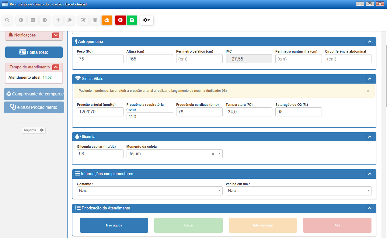 O sistema apresentará a tela padrão de Escuta Inicial contendo: