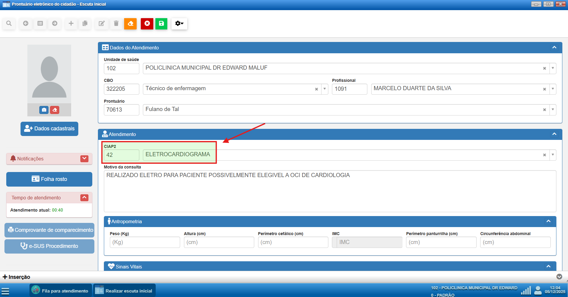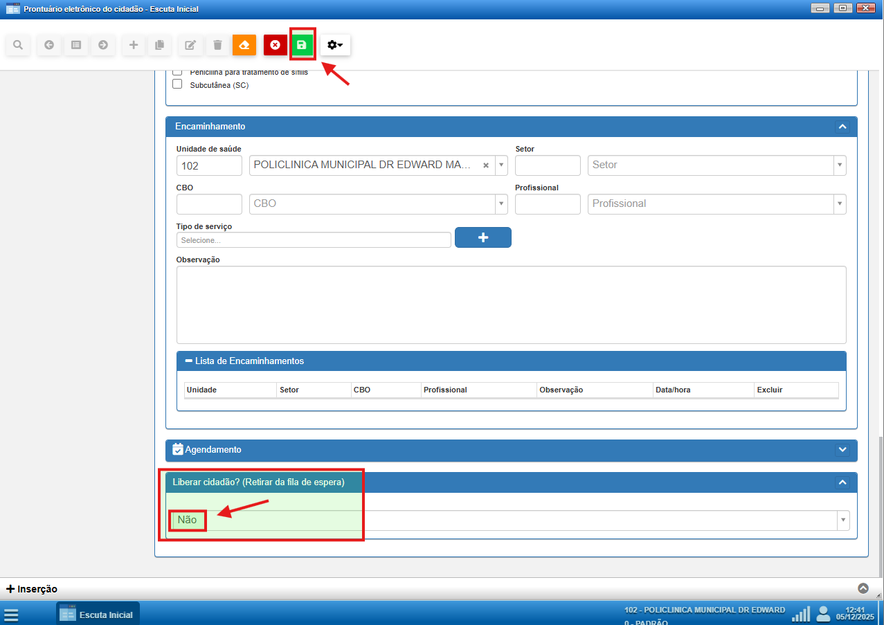 Isso fará com que o sistema exiba o ícone de “Escuta Inicial Realizada” na fila de atendimento médico.