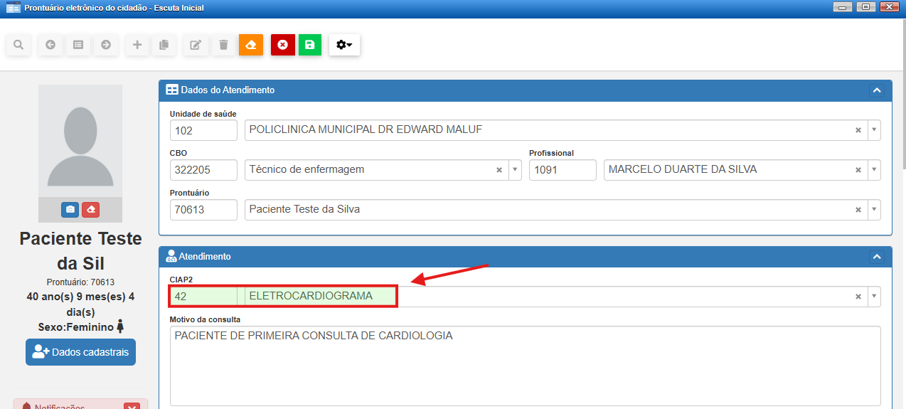 Quando o paciente comparecer à unidade, abra a Escuta Inicial a partir da fila do cardiologista.cardiologista, para isso, altere o filtro do profissional da fila ou especialidade na fila.