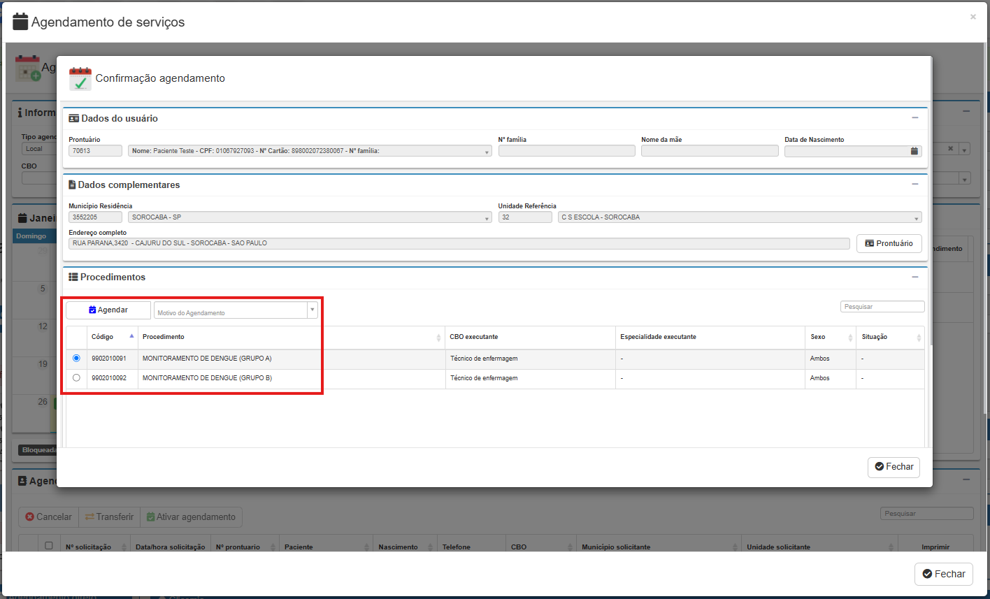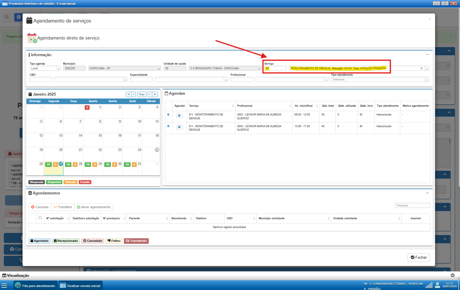 Para realizar o agendamento, você deve localizar o serviço "55 - MONITORAMENTO DE DENGUE".