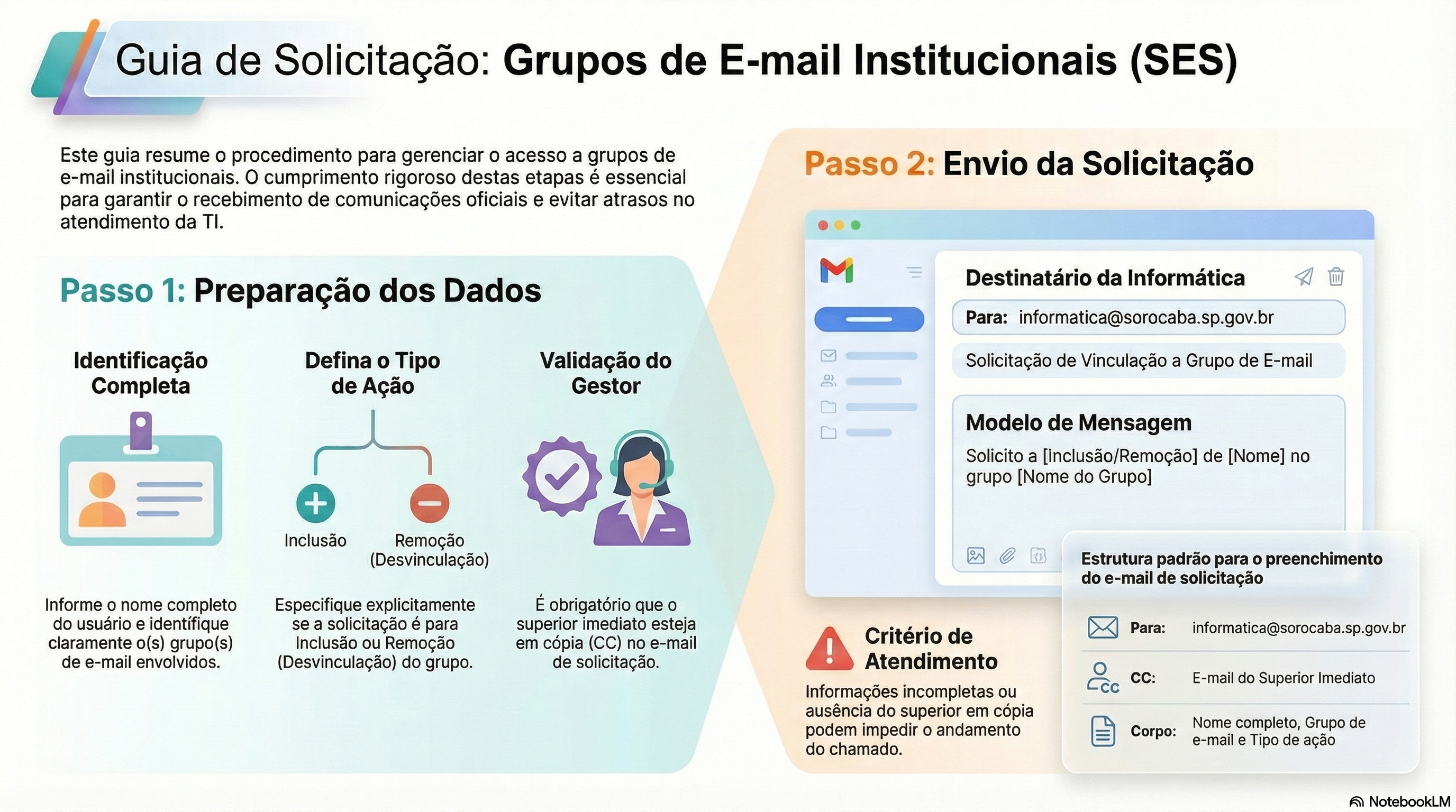 A solicitação pode envolver tanto a inclusão quanto a remoção de usuários desses grupos, conforme a necessidade do serviço.