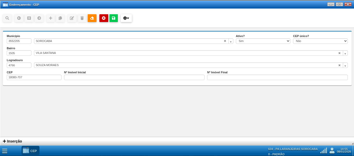 Nesta etapa, o CEP é associado à cidade, ao bairro e ao logradouro, garantindo que o endereço fique completo e corretamente padronizado para utilização nos cadastros e atendimentos do sistema.