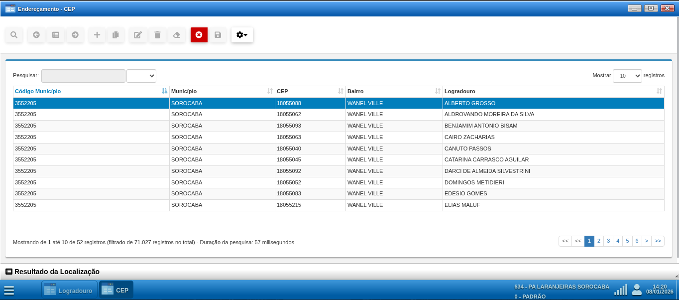 A aba CEP também pode ser utilizada para consultar endereços já cadastrados. Basta apenas filtrar de acordo com a pesquisa que você deseja.