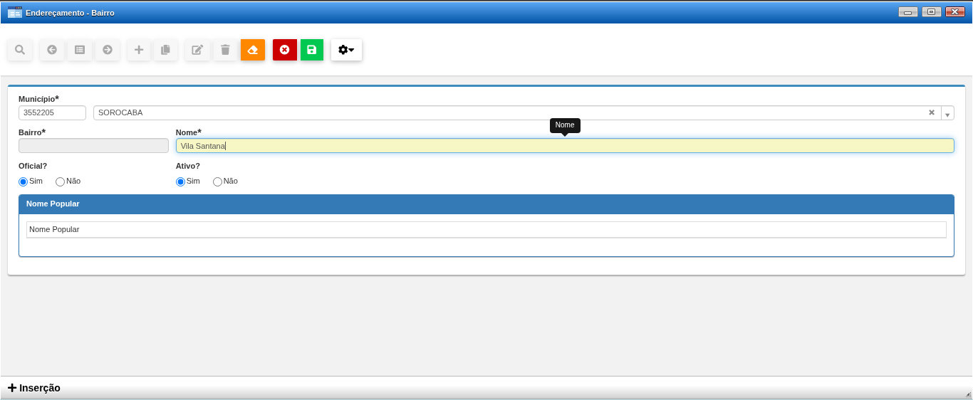 Esta etapa serve para criar o bairro que será utilizado nos cadastros de endereço.
