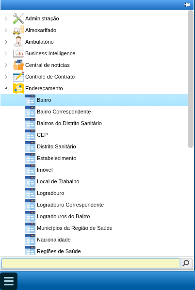 Após acessar o sistema SIS com seu usuário e senha, os cadastros de endereçamento ficam disponíveis no seguinte caminho: