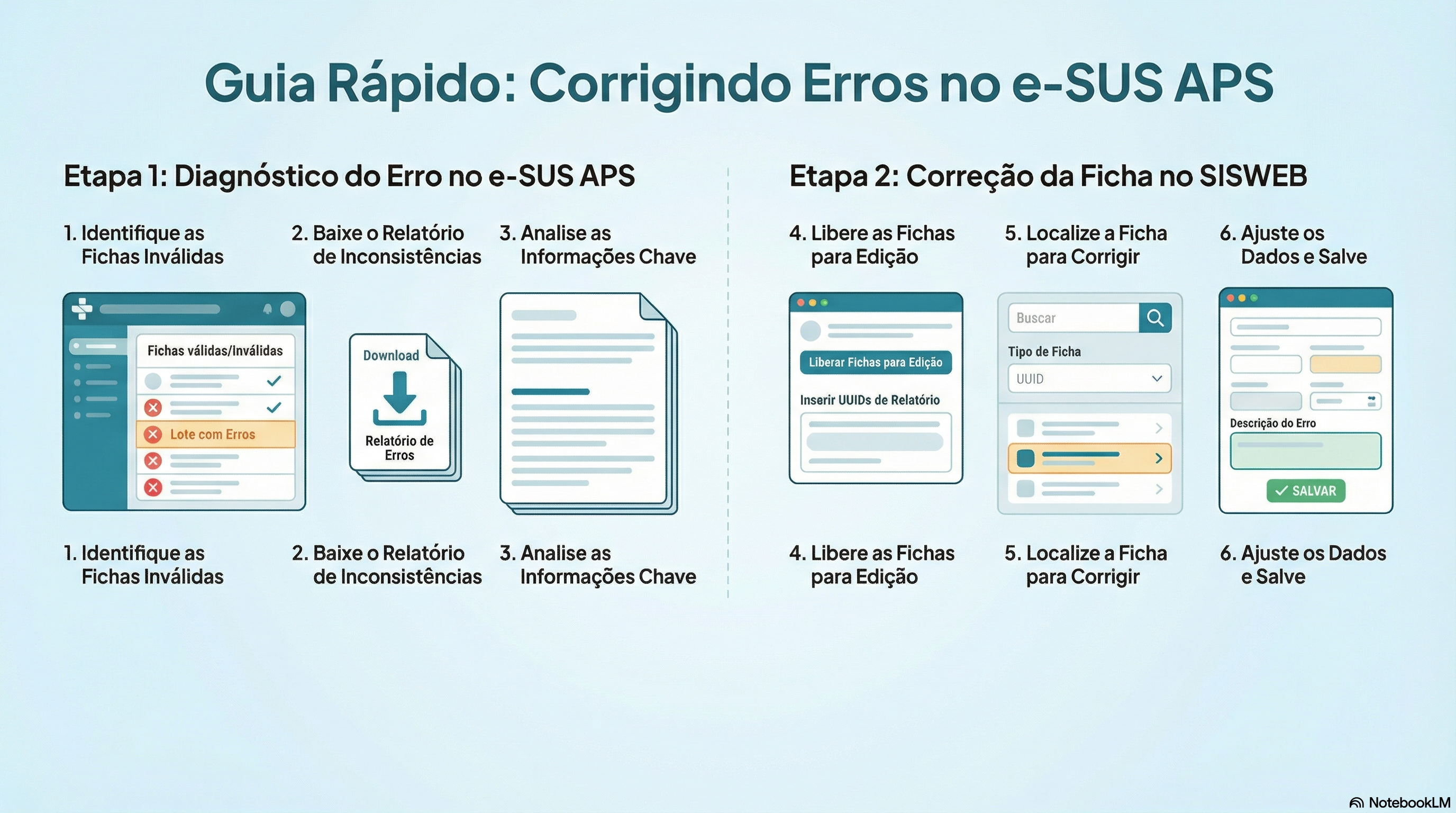 Este manual tem como objetivo orientar, de forma simples e clara, o processo de identificação e correção de erros e inconsistências encontrados após a transmissão das fichas do e-SUS APS.