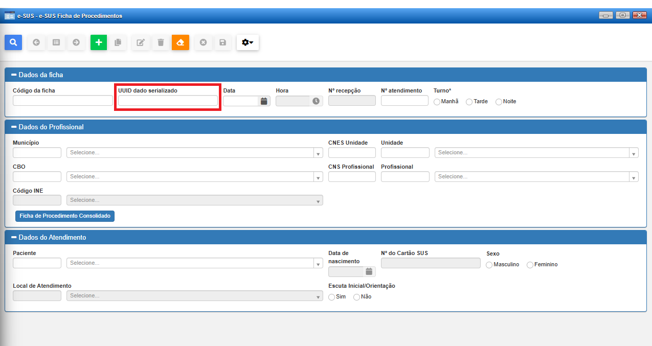 Selecione o tipo de ficha correspondente ao erro (ex.: Ficha de Procedimentos, Atendimento Individual, etc.).