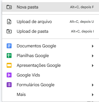Para facilitar a visualização e o controle, recomenda-se organizar os arquivos em pastas no Google Drive.