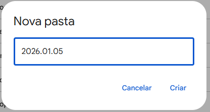 Utilize o padrão de nomeação: Ano.Mês.Dia (exemplo: 2026.01.05).