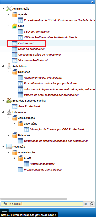 Caso consiga o CNS correto do profissional (encontrado no CNES), pesquisar por"Profissional"para começar a correção.