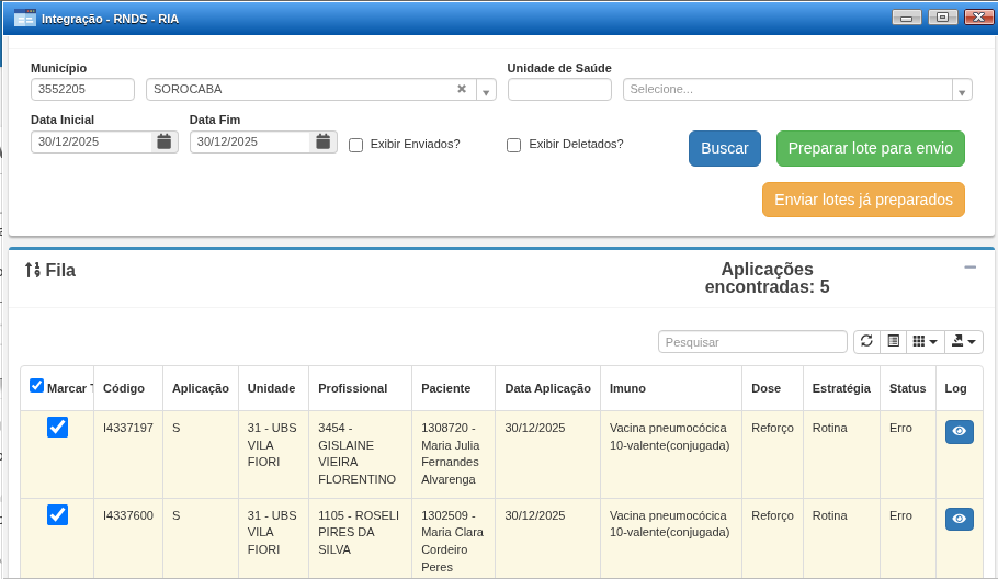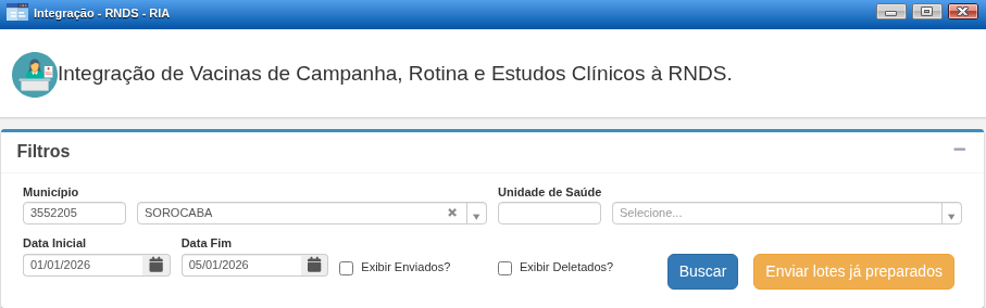 A transmissão de vacinas no SIS é o processo responsável por enviar os registros de vacinação do sistema municipal para a RNDS, por meio da Integração RIA (Vacinas).