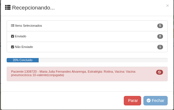 Após a conclusão, o status será atualizado conforme o retorno da RNDS.